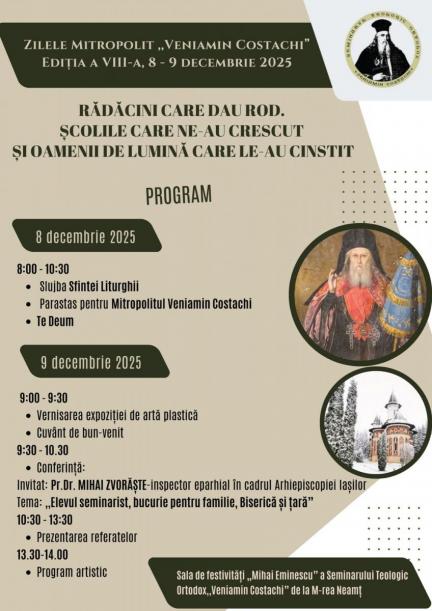 Preasfințitul Părinte Nichifor Botoșăneanul va participa la concertul de colinde organizat de Protopopiatul Piatra Neamț, care va avea loc, începând cu ora 17.00, la Cinema Mon Amour (Dacia) din Piatra Neamț. Programul de colinde va fi susținut de următoarele grupuri și ansambluri: Camena, Imperialii, Evanghelismos, Melozii Neamțului, Grupul vocal „Flori de Cireș”, Ansamblul „Icoane Moldave” și Cufărul Borleștiului. Participarea la eveniment este liberă, în limita locurilor disponibile.