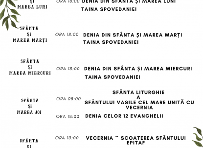 Program Liturgic - Săptămâna Sfintelor Pătimiri